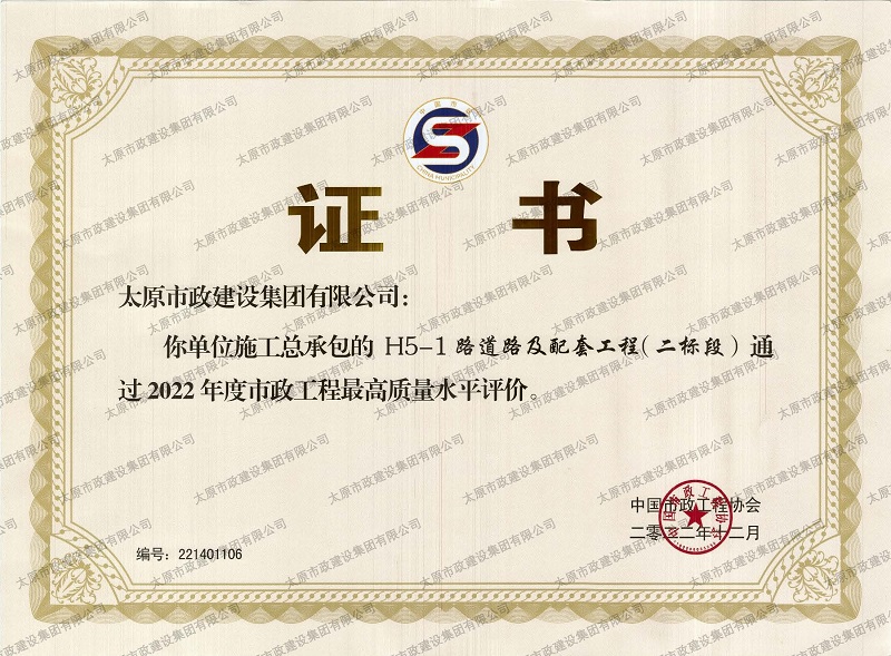 資質(zhì)證書(shū) 營(yíng)業(yè)執(zhí)照 2022年度市政工程最高質(zhì)量水平評(píng)價(jià)_H5-1路道路及配套工程(二標(biāo)段) 2022年度工程建設(shè)誠(chéng)信典型企業(yè) 中國(guó)施工企業(yè)管理協(xié)會(huì)_AAA級(jí)企業(yè)信用等級(jí) 2022年度全國(guó)市政工程建設(shè)優(yōu)秀質(zhì)量管理小組三等獎(jiǎng)_''核動(dòng)力QC小組”提高瀝青路面壓實(shí)度合格率”